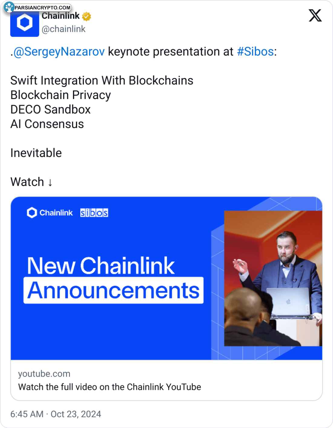 Chainlink شرکتی است که بر روی اتصال شبکههای مختلف کار میکند و Swift سیستمی است که بانکها برای ارسال پیام به یکدیگر استفاده میکنند. با تلفیق این دو فناوری، مؤسسات مالی میتوانند به راحتی از پیامهای Swift برای ارتباط با بلاکچین استفاده کنند که این امر به تسویه راحتتر داراییهای دیجیتالی کمک میکند.