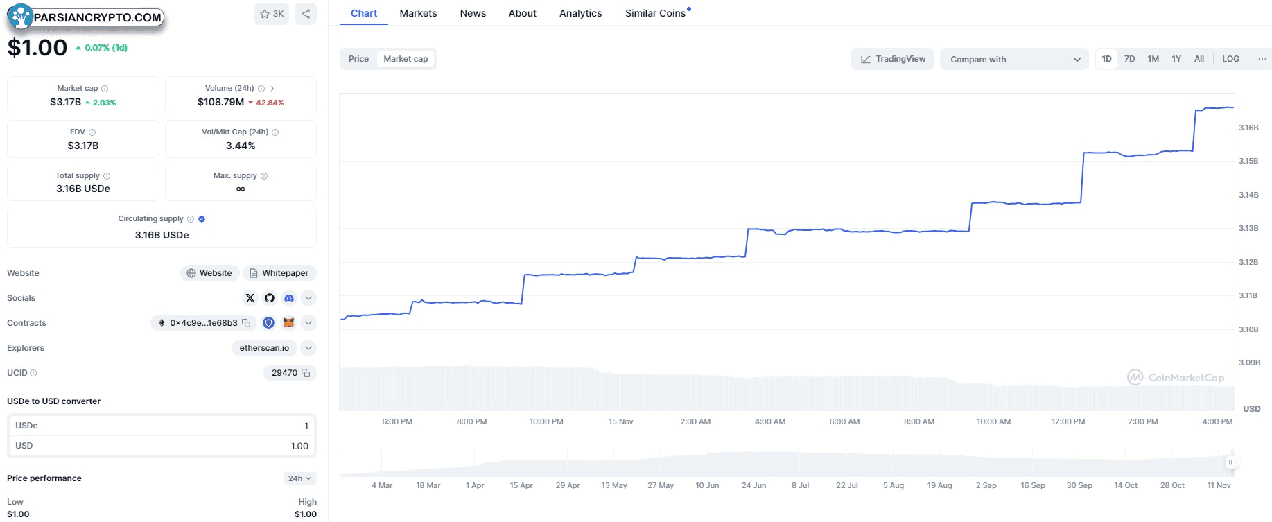 در تاریخ ۲۵ اکتبر، وینترموت امکان استفاده از USDe به عنوان تضمین برای معامله ارزهای دیجیتال و محصولات مالی دیگر فراهم کرد. این به معنای آن است که افراد میتوانند از USDe برای کمک به معاملات انواع مختلف ارزهای دیجیتال استفاده کنند.