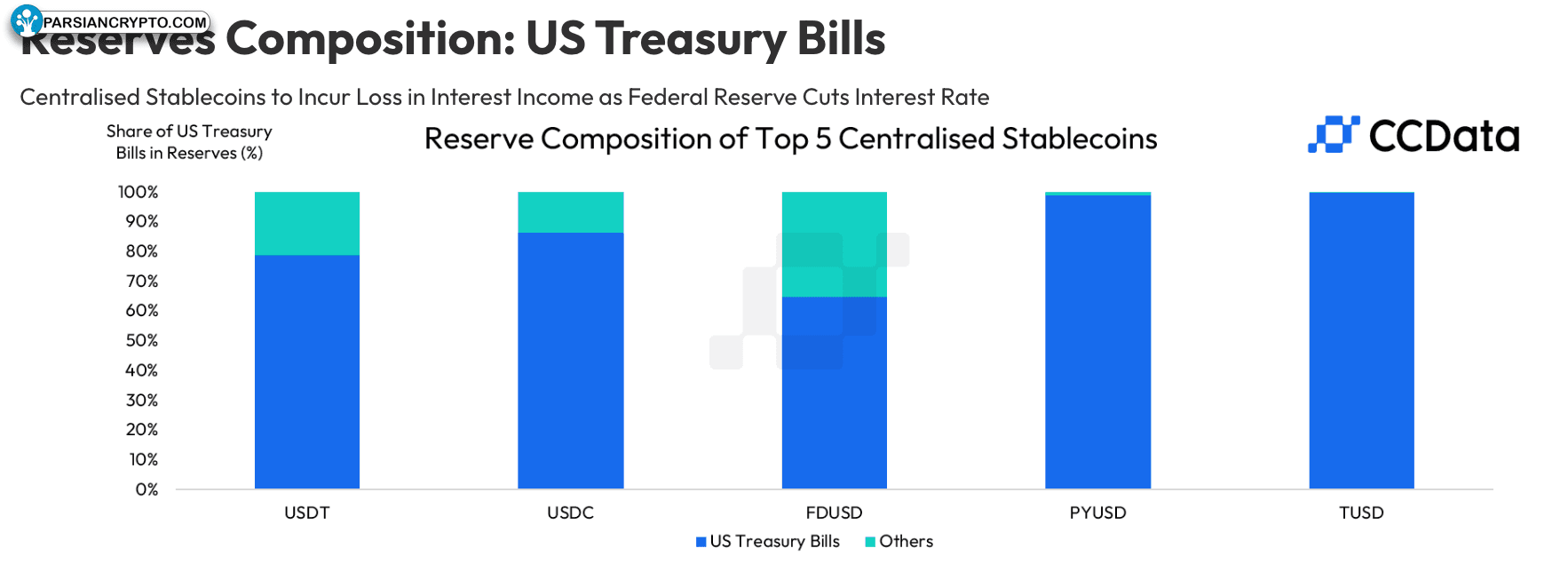 به عنوان مثال، Tether’s USDt بزرگترین استیبلکوین است که حدود ۹۳.۲ میلیارد دلار در اوراق قرضه سرمایهگذاری کرده و در نیمه اول سال ۲۰۲۴ حدود ۵.۲ میلیارد دلار سود کرده است. سایر استیبلکوینها مانند USD Coin نیز از این کاهش نرخ بهره تأثیر میپذیرند.