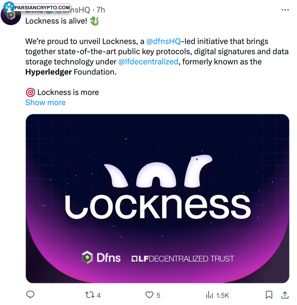 یک عضو جالب دیگر در LFDT شرکتی به نام Dfns است که خدمات کیف پول برای مدیریت امن cryptocurrency ارائه میدهد. آنها فناوری خود را که به عنوان پروژه Lockness شناخته میشود، به اشتراک گذاشتهاند. Dfns اشاره کرده است که در حال ایجاد یک سیستم معتبر برای مدیریت cryptography هستند که برای صنایعی مانند مالی که قوانین سختگیرانهای دارند بسیار مهم است.