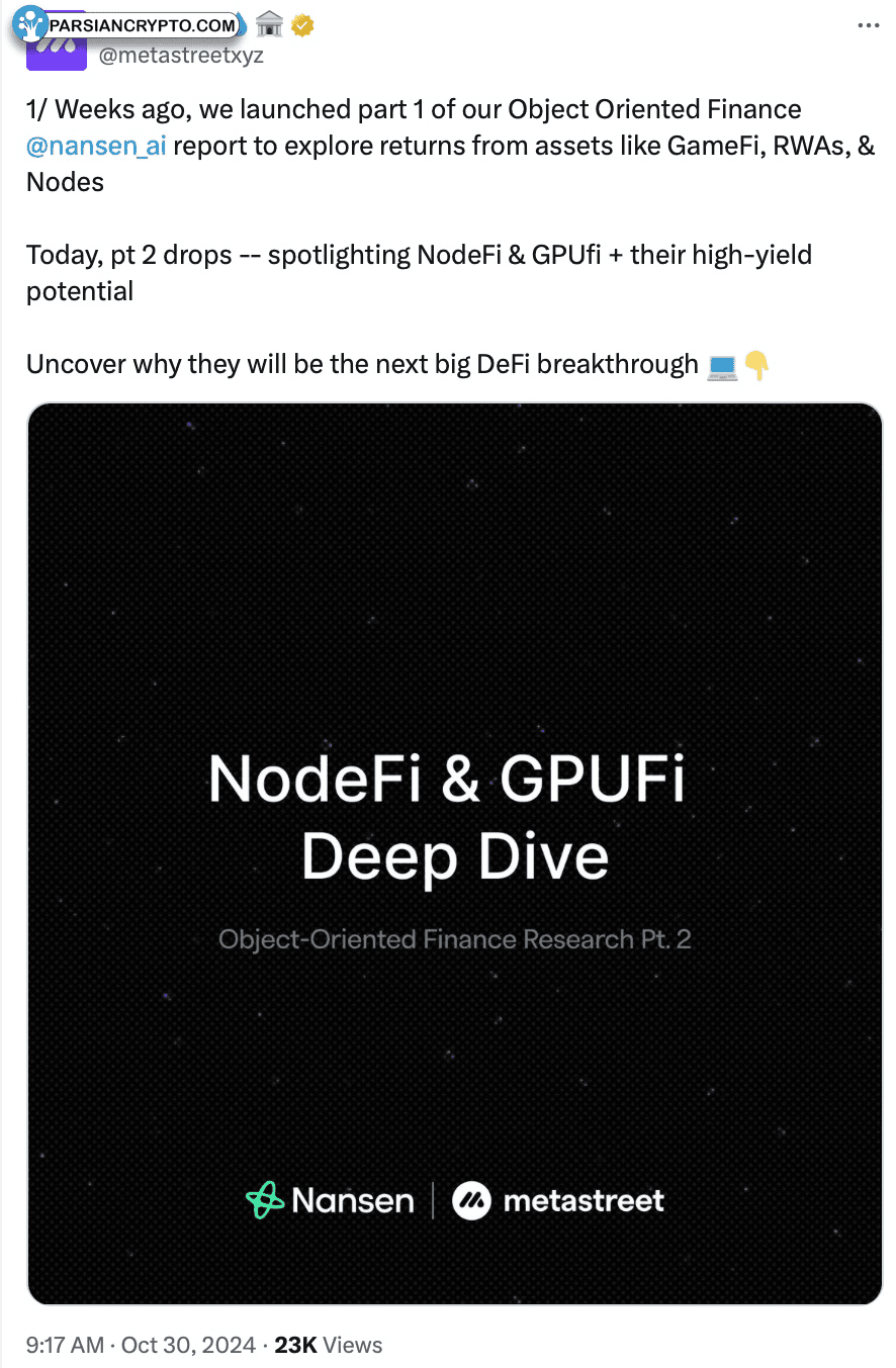 یکی از نکات برجسته این گزارش، معرفی دو روش خاص برای سرمایهگذاری است: NodeFi و GPUfi. این روشها در پی افزایش نیاز به منابع محاسباتی به واسطه هوش مصنوعی، محبوبیت پیدا کردهاند. در روش GPUfi، افراد با اجاره دادن کارتهای گرافیک خود میتوانند درآمد کسب کنند. NodeFi نیز به افراد امکان میدهد تا به طور منظم توکن دریافت کنند.