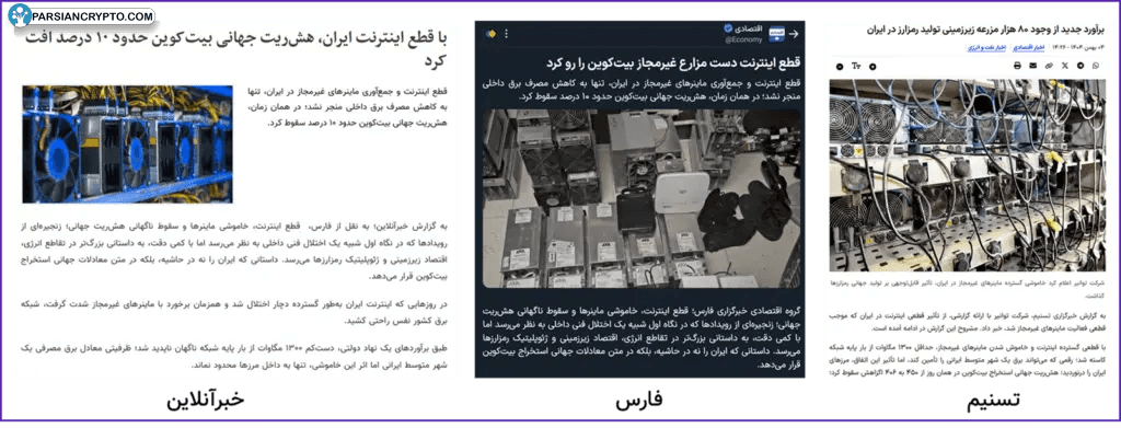 یکی از اتفاقاتی که در رسانههای داخلی و خارجی بازتاب زیادی پیدا کرد، قطعی اینترنت در ایران بود؛ رویدادی که بسیاری آن را عامل اصلی کاهش هشریت تلقی کردند. اما بررسی دادههای نموداری نشان میدهد که در بعضی مقاطع همزمان با این قطعی اینترنت، حتی رشد مقطعی هشریت نیز مشاهده شده است. این موضوع نشان میدهد که نسبت دادن نوسانات هشریت بیت کوین به یک عامل محلی مانند اختلالات شبکه اینترنت در یک کشور، فاقد استناد دقیق دادهای است و نمیتواند ماهیت بینالمللی و غیرمتمرکز شبکه بیت کوین را بهدرستی تبیین کند.
